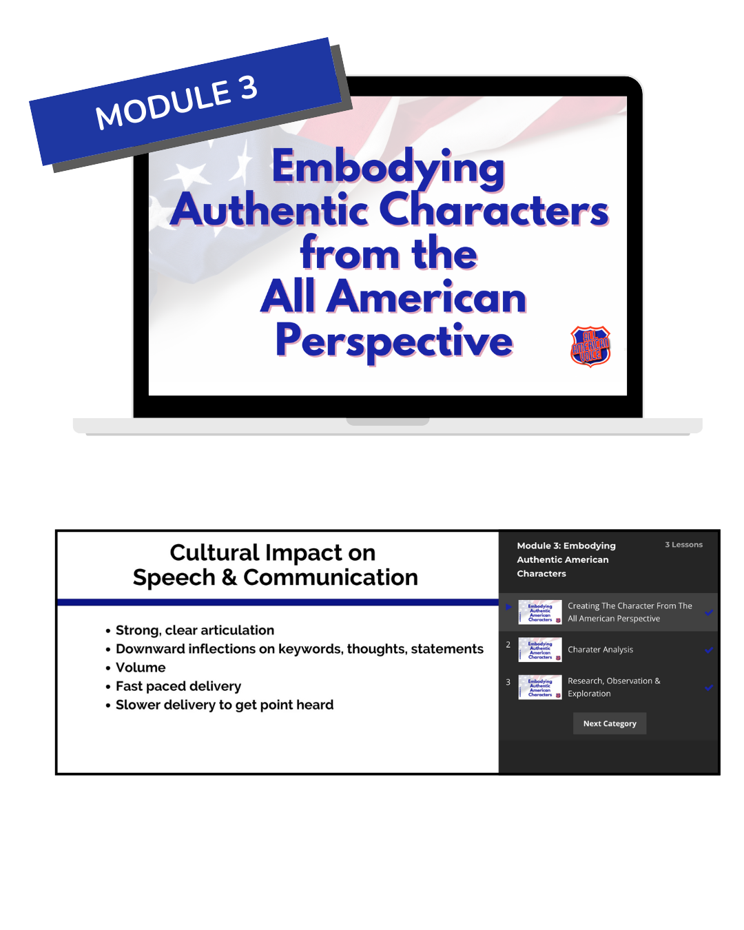 • Learn to analyze the text through the American lens, understanding the cultural and emotional context that makes the character authentically American.